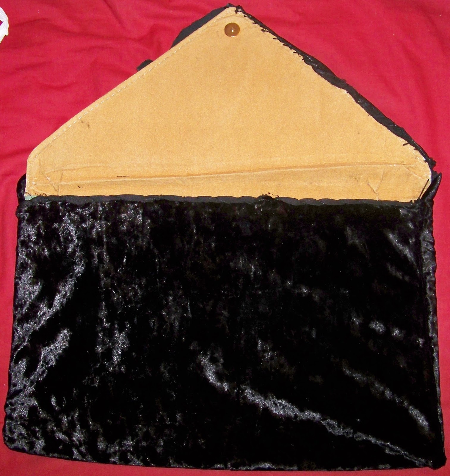 i also discovered i had some old leggings i wanted to throw away so because it had a leather pannel, i cut that out and used it on the flap just to edge it up because the full on velvet just looked flat :)